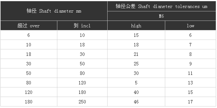 軸徑公差 Shaft diameter tolerances