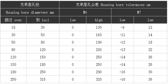 支承座孔公差 Housing bore tolerances